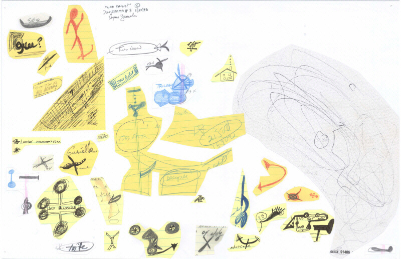 Cyrus' doodles are a treasure trove of musical notes and amoebic forms. They are full of light and adventure. There are numbers and names an